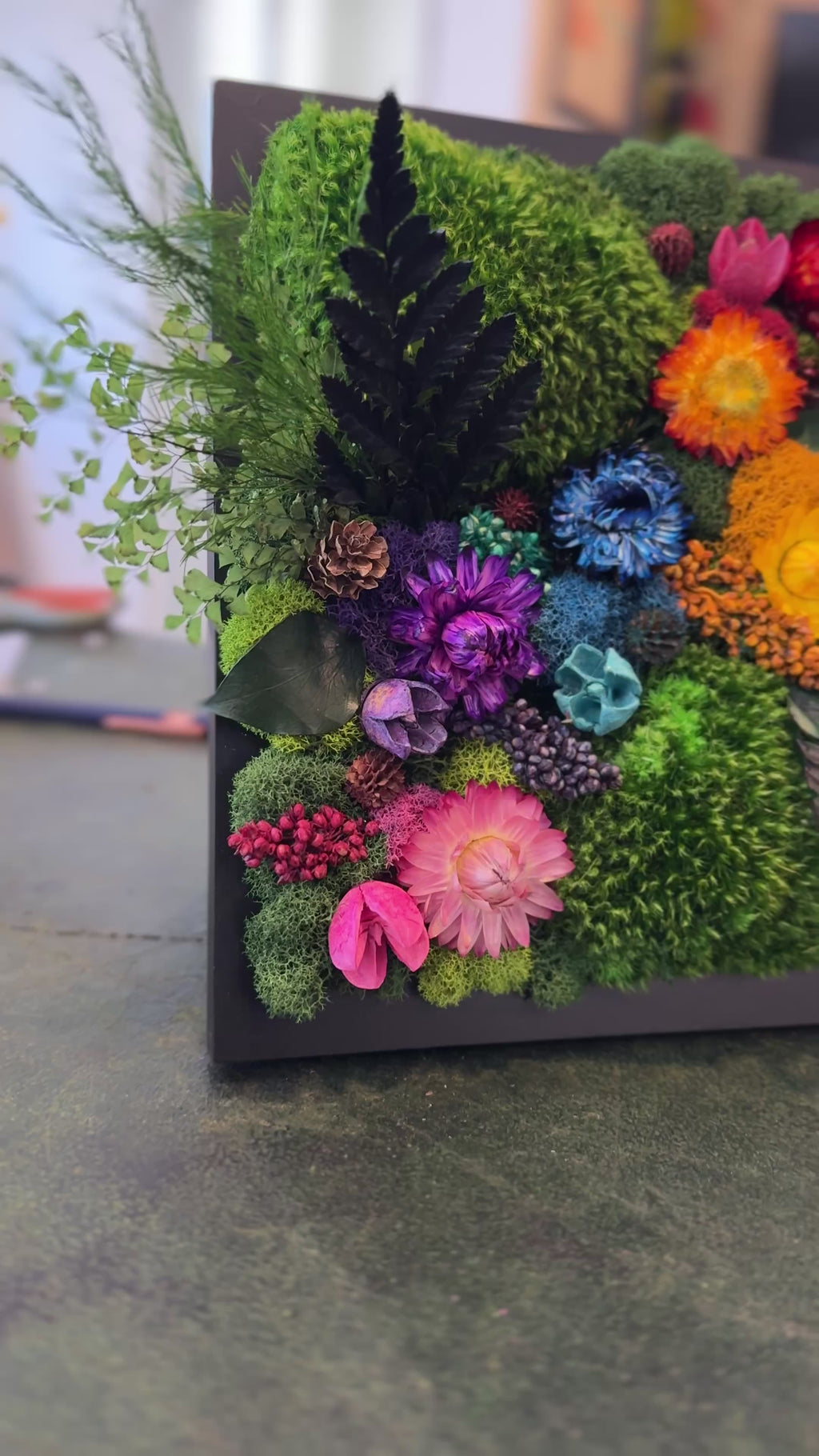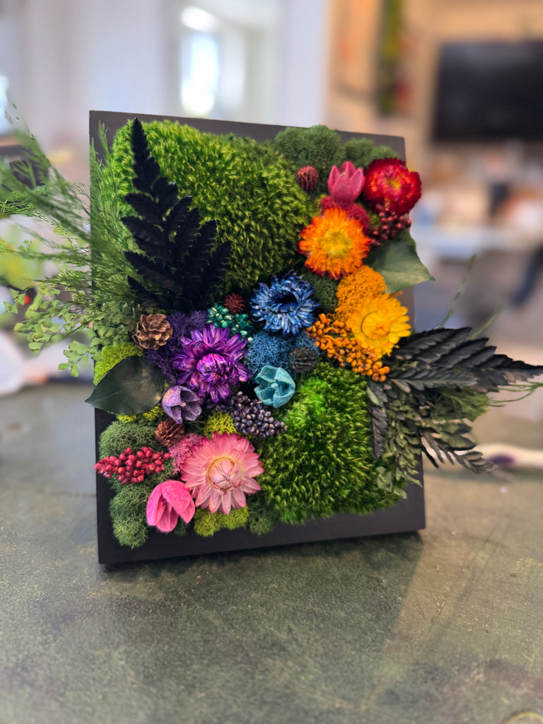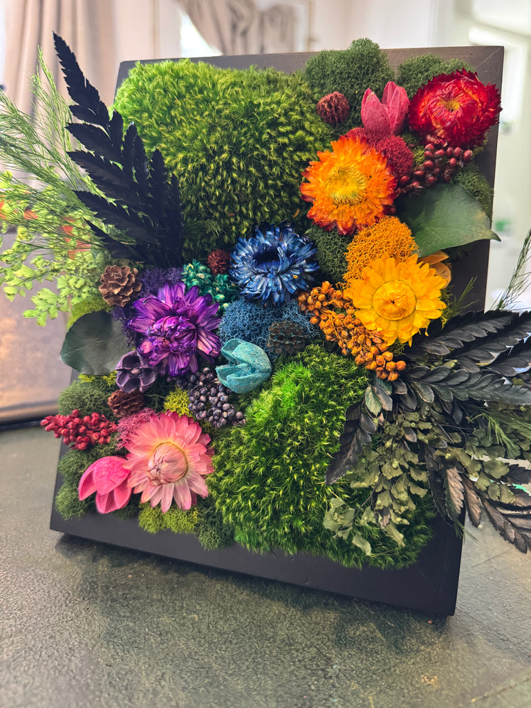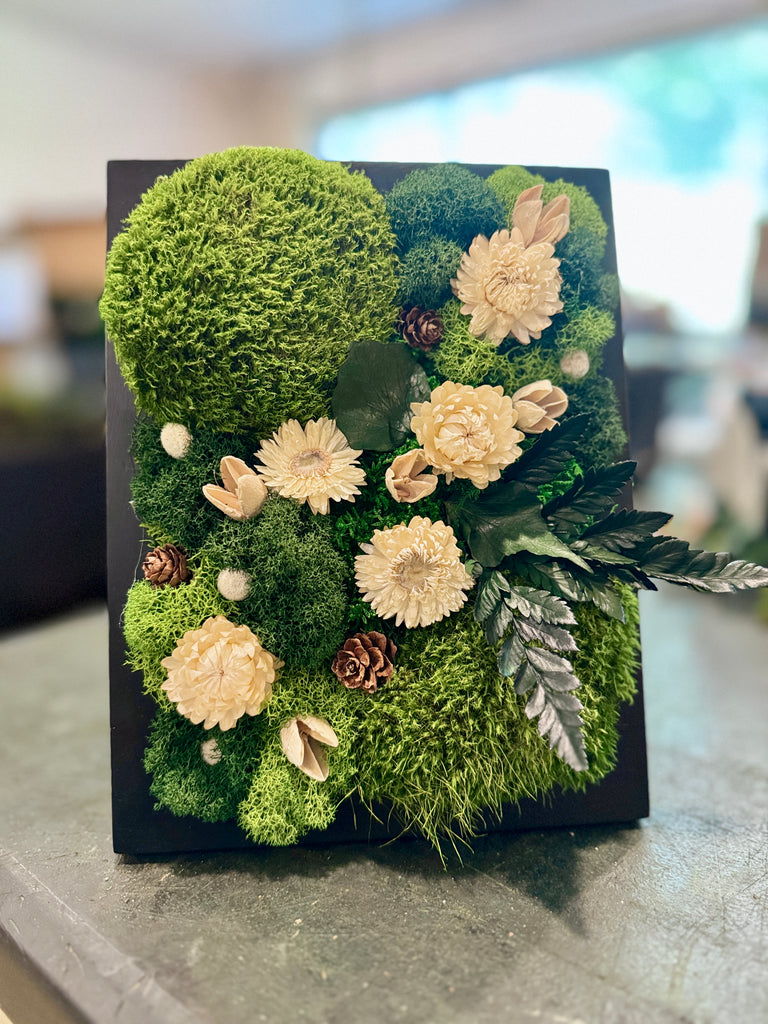 Maintenance-Free: Enjoy vibrant, real preserved moss and flowers with zero upkeep. DO NOT WATER OR PLACE IN DIRECT SUN!