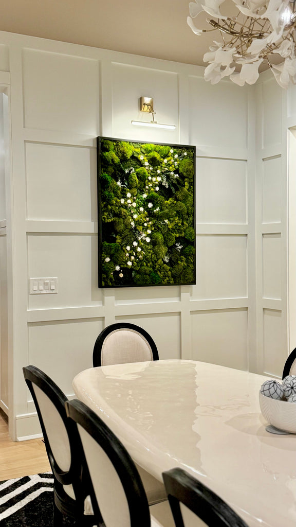 Each created piece will be unique and special in its own way but will follow the same design footprint as what you see in the pictures. Your moss art is guaranteed to be an eye-catching, conversational piece for years to come.